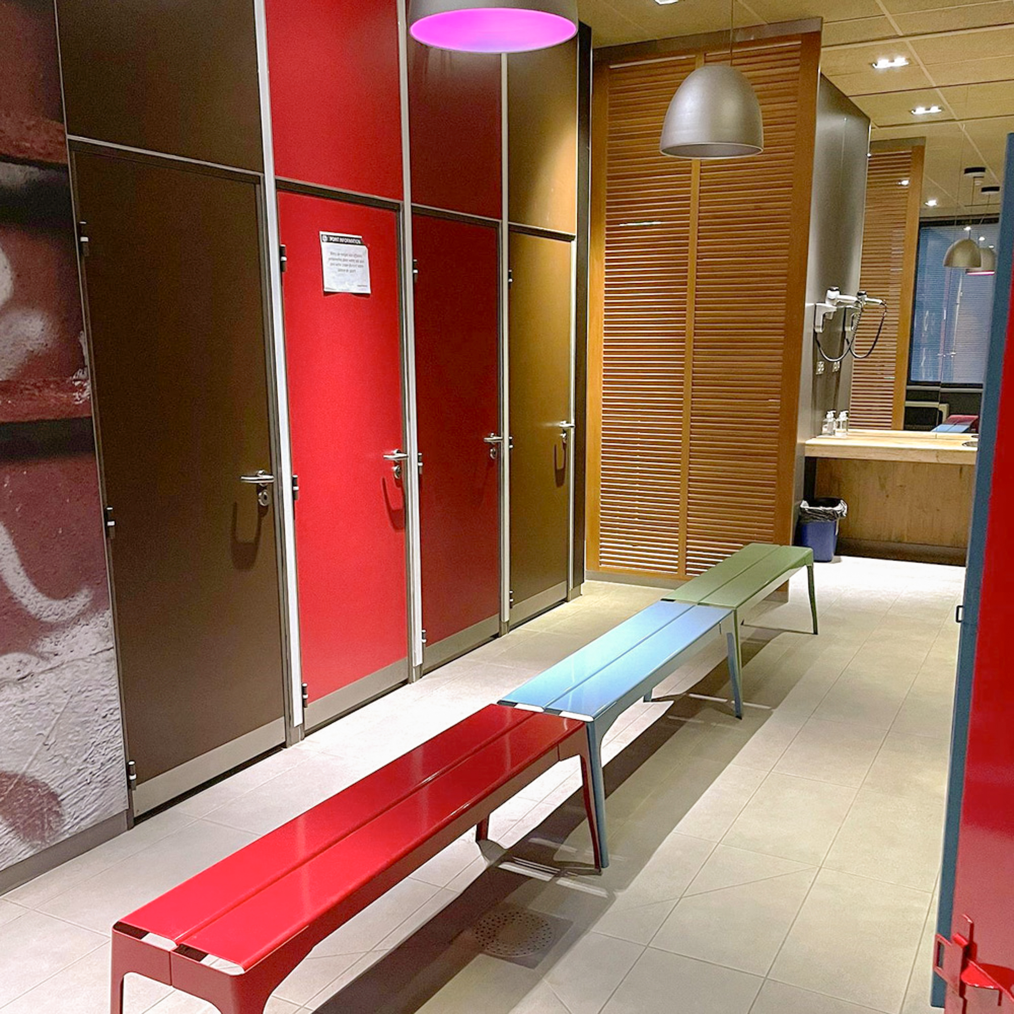 - Deux espaces vestiaires avec douches individuelles et casiers-vestiaires.